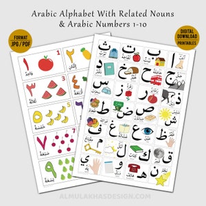 Digital Download Arabic Alphabet with nouns & Numbers Poster | Etsy