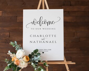 White Flowers Wedding Poster. Printable Wedding Poster. Floral Welcome Poster Template. Wedding Landsc… | Wedding printables, Wedding welcome signs, Wedding posters