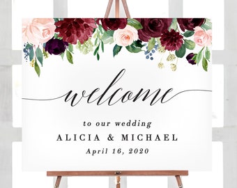 Wedding Welcome Poster Template. Printable Wedding Welcome Poster. Plum and Purple Flowers Poster. Purple We… | Wedding posters, Wedding printables, Wedding welcome