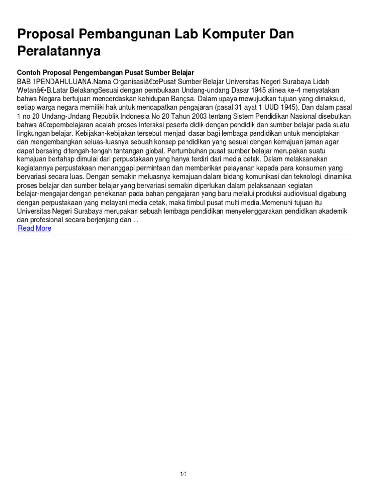 DOC) PROPOSAL PENGADAAN LABORATORIUM KOMPUTER SMK NEGERI 1 NANGA TAYAP | fizumi fillah - Academia.edu