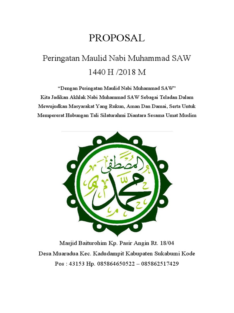 DOC) PROPOSAL KEGIATAN PERINGATAN MAULID NABI MUHAMMAD SAW 1437 H | Siti Mariam - Academia.edu