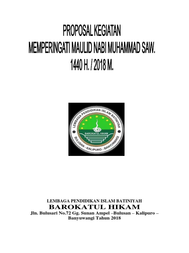 P R O P O S A L MAULID NABI MUHAMMAD SAW 1439 H - PDF Download Gratis