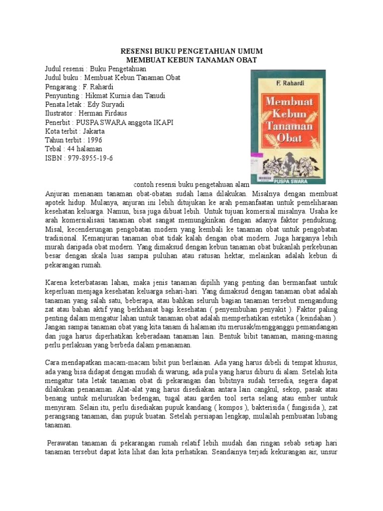 Contoh Resensi Buku Pengetahuan Umum tentang Kebun Tanaman Obat