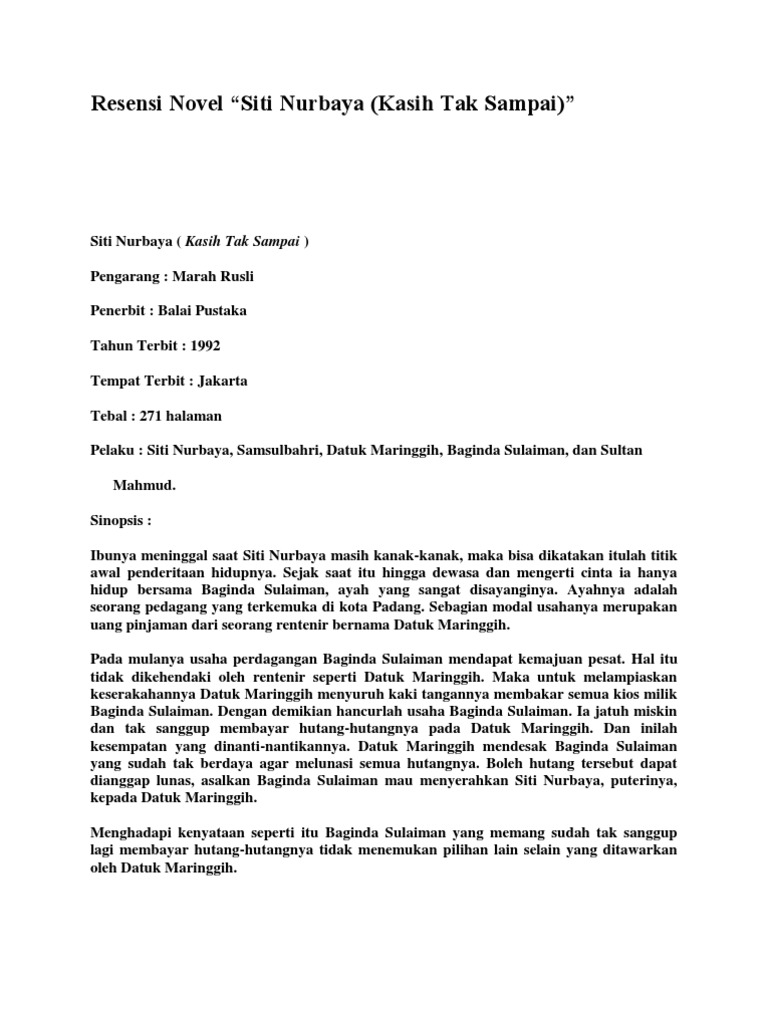 DOC) SINOPSIS NOVEL SITI NURBAYA | Yull Yulan - Academia.edu