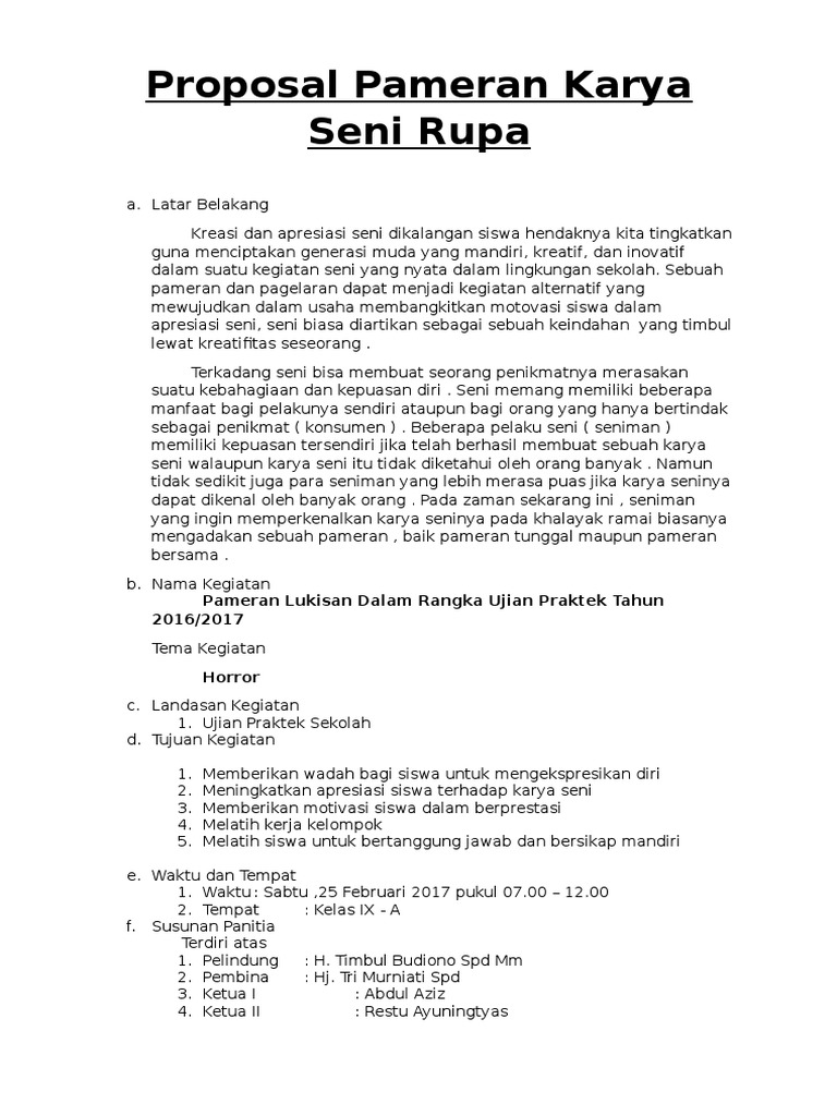 DOC) PROPOSAL KEGIATAN PAMERAN SENI LUKIS | dimas alfarizi - Academia.edu