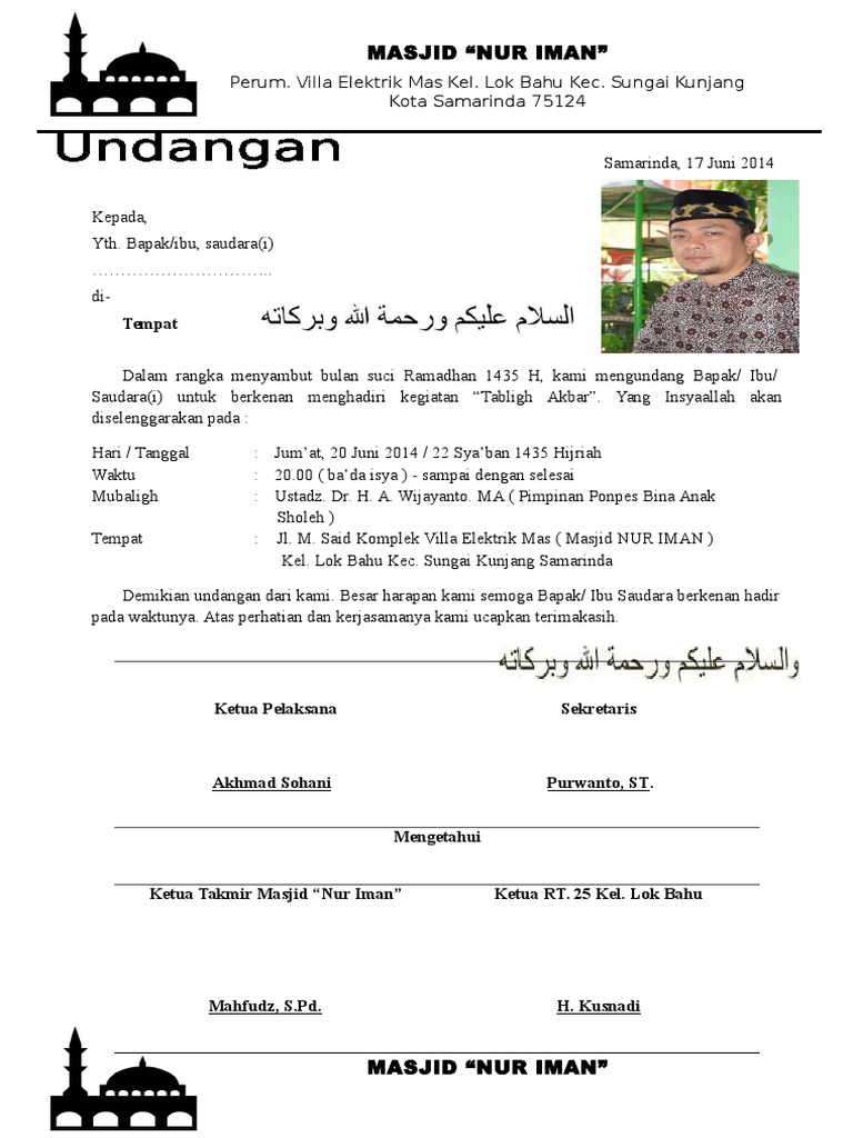 Contoh Surat Undangan Menyambut Bulan Suci Ramadhan - Berbagi Contoh Surat