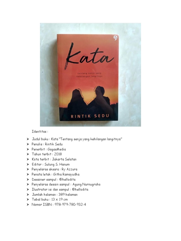 Jual BEST SELLER BUKU NOVEL KATA BY RINTIK SEDU NOVEL INDONESIA - Jakarta Selatan - Sparepart5 | Tokopedia