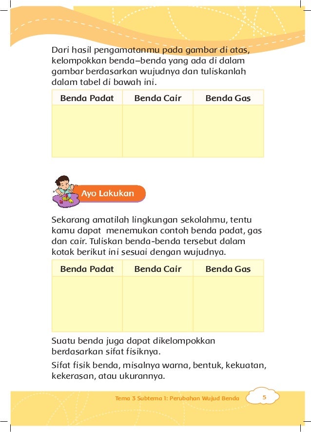Pembelajaran 6 Subtema 2 Wujud Benda | Mikirbae.com