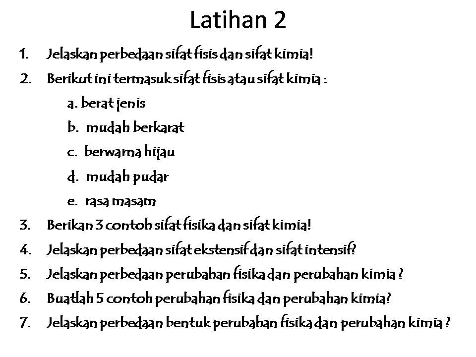 1. Jelaskan perbedaan perubahan fisika dan perubahan kimia suatu …