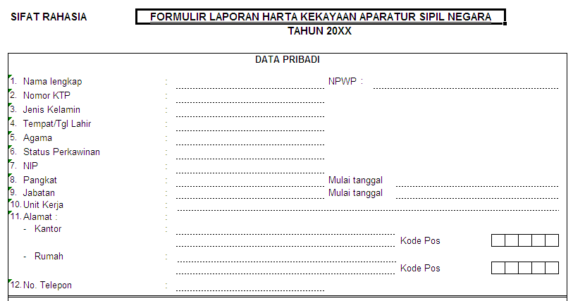 CONTOH FORMULIR LAPORAN HARTA KEKAYAAN APARATUR SIPIL NEGARA BAGI PNS ATAU ASN | INFO PUBLIK