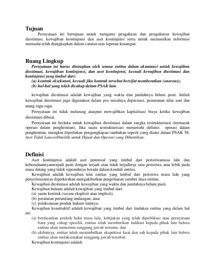 DOC) psak 57 provisi,liabilitas kontijensi,aset kontijensi.docx | rini yulianti - Academia.edu
