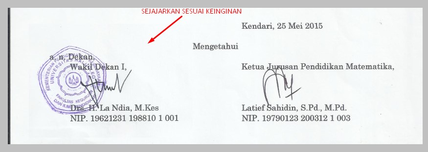 2 cara mengatur posisi atau kolom tanda tangan pada ms word