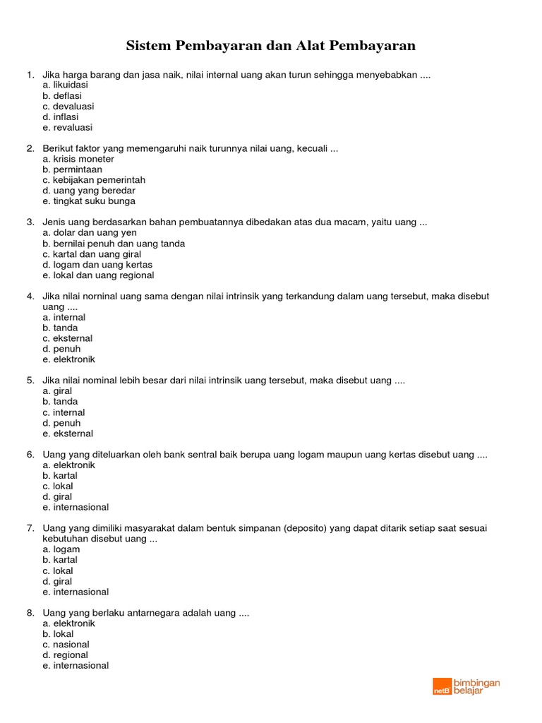 40 Soal & Jawaban Bab Sistem dan Alat Pembayaran (Uang) - Muttaqin id
