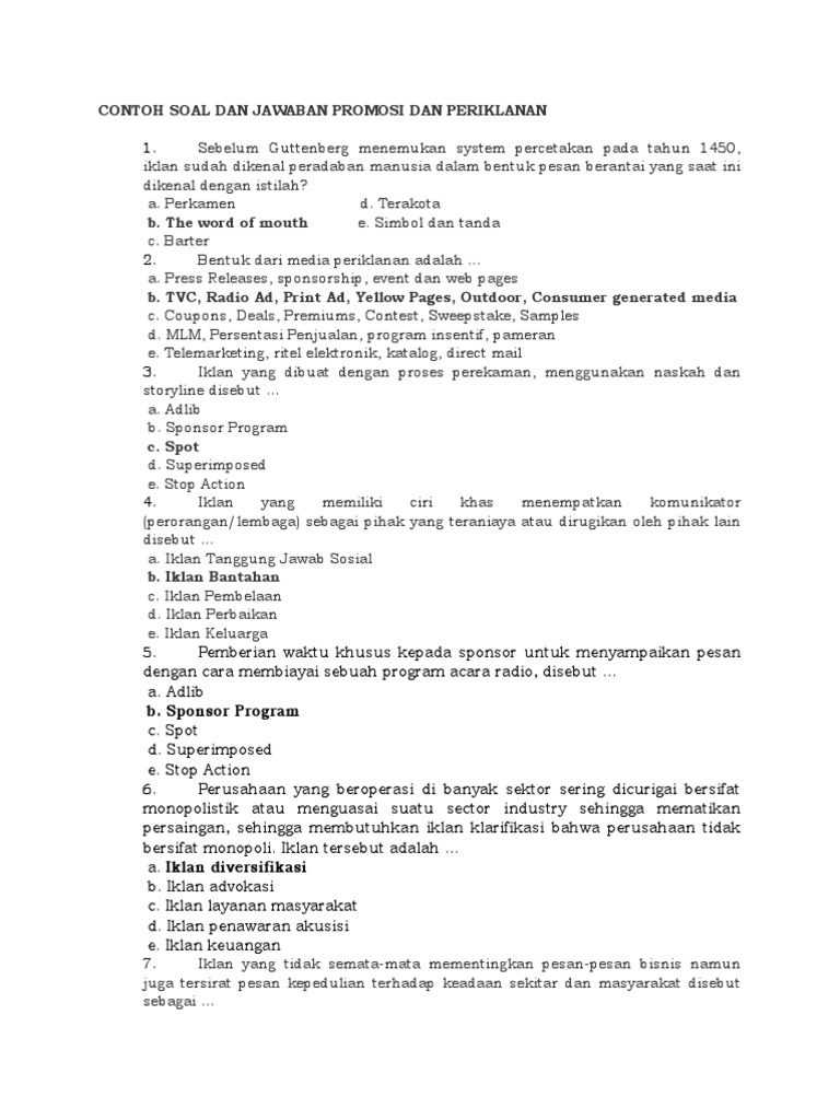 Contoh Soal Media Promosi Pilihan Ganda dan Jawaban