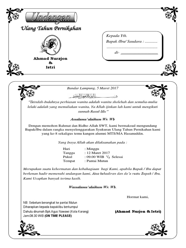 Contoh Undangan Ulang Tahun Pernikahan | Ucapan