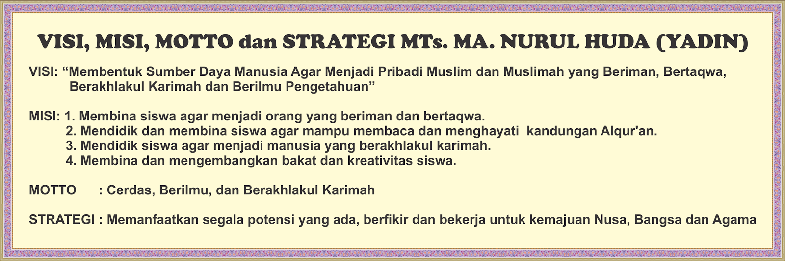 VISI, MISI, MOTTO dan STRATEGI MTs, MA, NURUL HUDA (YADIN) ~ YAYASAN YADIN PINANG