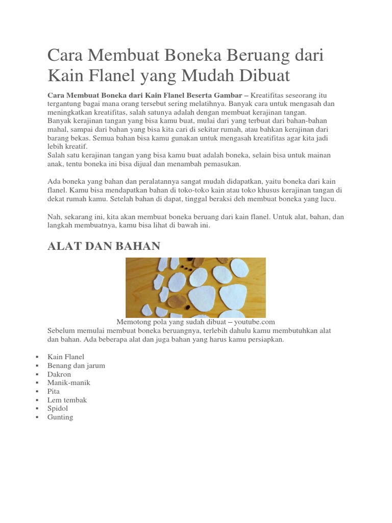Boneka Kain Flanel Dan Cara Membuat