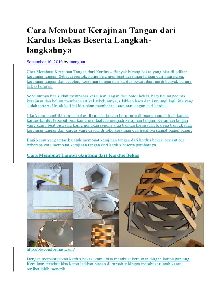 Cara Membuat Kerajinan Tangan Dari Kardus Bekas Beserta Langkah
