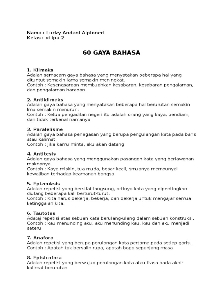 DOC) Macam-Macam Majas Beserta Contohnya | Iin Agustian - Academia.edu