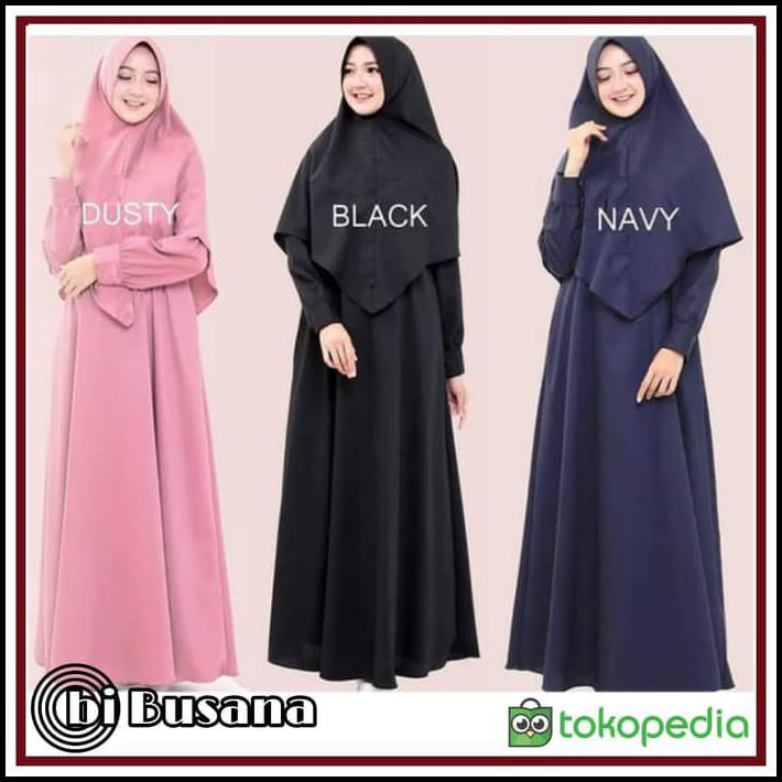 gamis syari polos plus khimar wolfis premium | Shopee Indonesia