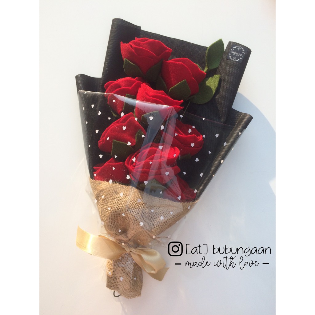 Bunga Flanel / Buket bunga mawar simple/buket bunga flanel/buket mini /buket bunga artificial/bunga | Shopee Indonesia