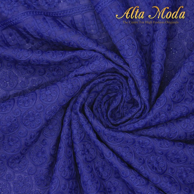 Alta Moda Kain Katun Bordir Motif Bunga Circle Biru Elektrik (1M …