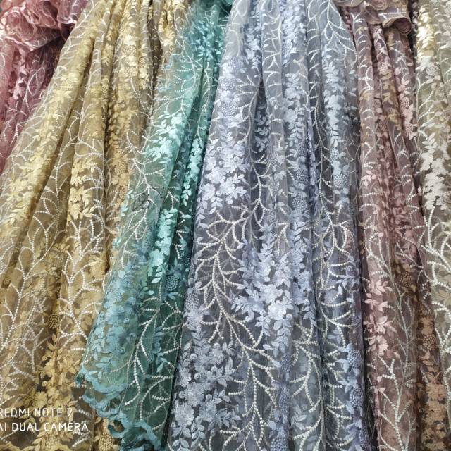 Tulle bordir akar Korea / bahan brokat akar mutiara ( harga permeter). | Shopee Indonesia