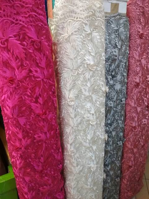 Kain tile bordir 3 dimensi bunga rambat AYUMI 2 / brokat 3D / bahan kebaya dress pesta | Shopee Indonesia