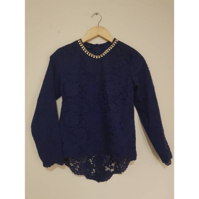 Baju kondangan(blus brokat) warna biru dongker | Shopee Indonesia