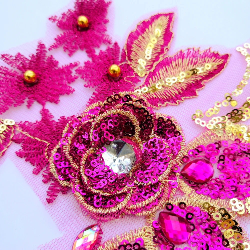 Merah Muda Renda Patch Kain Motif Timbul Pernikahan Emas Manik manik Hiasan 3D Bunga Bordiran Jahit Dekorasi Baju 26X40 CM Desain|Tambalan| - AliExpress