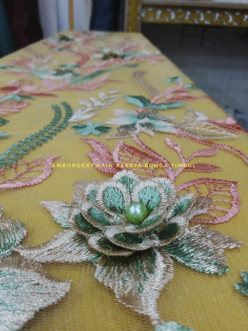 Embordery kain kebaya bunga timbul, Fesyen Wanita, Pakaian Wanita, Gaun & Rok di Carousell