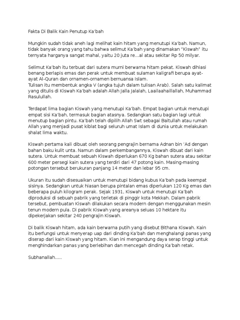 Senandung Asa Inez Larasati: Fakta Di Balik Kain Penutup Ka’bah