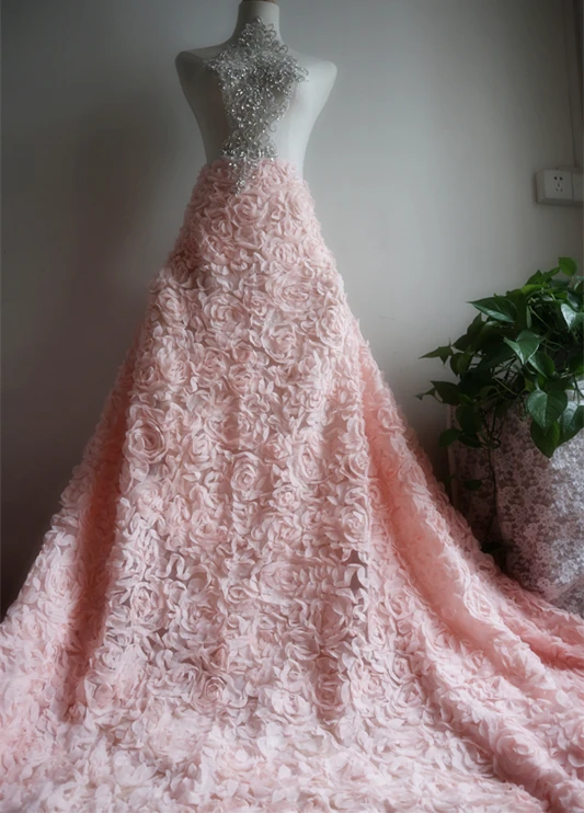 1 Yard 3D Sifon Bunga Renda Kain, warna Pink Muda 3D Rose Lipit Mengacak acak Renda Kain untuk Pengantin Pernikahan Gaun|Kain| - AliExpress