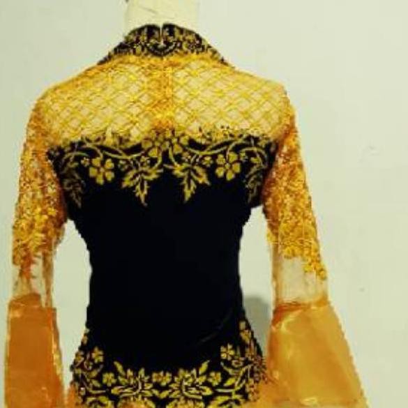 Jual Kebaya Kombinasi Tulle dan Kain Kaca Model Peplum Warna Gold …