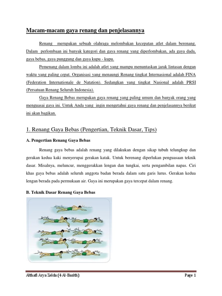 DOC) Pengertian Renang Gaya Dada / Katak | Muhammad Miftah - Academia.edu