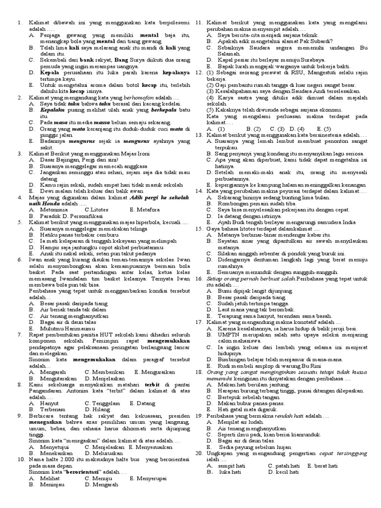 PANDUAN LENGKAP MAJAS, PERIBAHASA, PEMBENTUKAN ISTILAH, SINONIM …