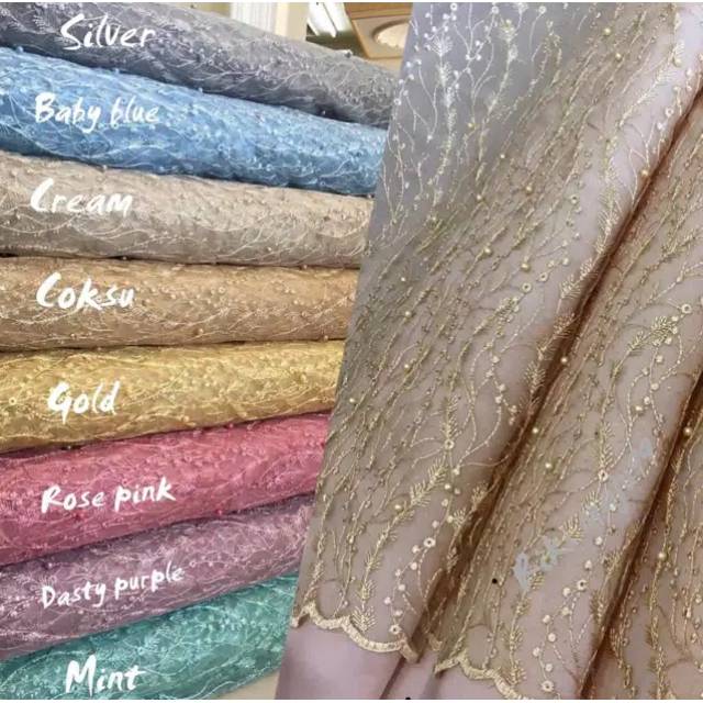 Bahan kebaya bahan gaun brokat Tile mutiara bordir with Glitter (harga per setengah meter) | Shopee Indonesia