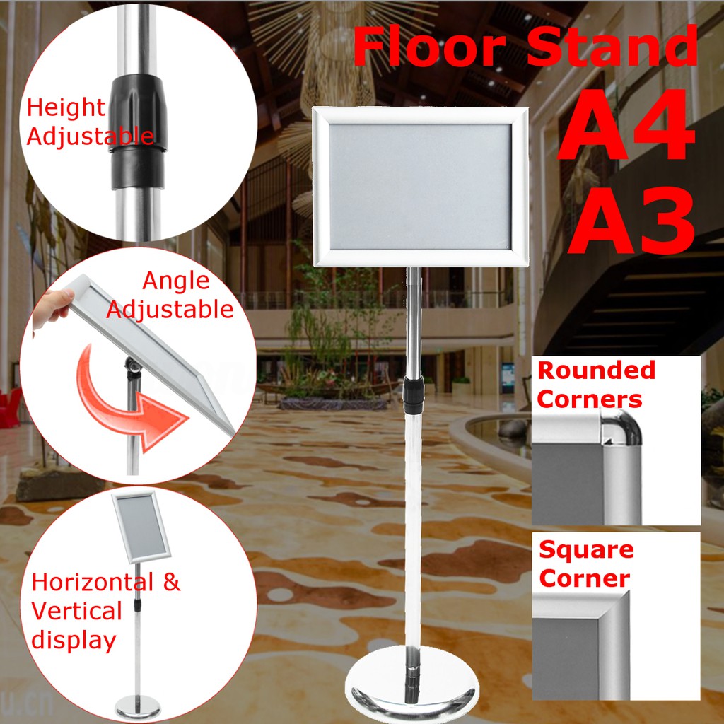 A3 A4 Floor Stand Pole Height Angle Poster Display Sign Holder Silver_WL | Shopee Singapore