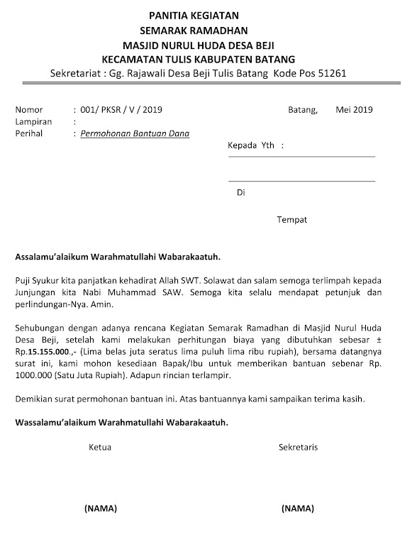 Sumbangan Contoh Surat Permohonan Bantuan Dana Kegiatan
