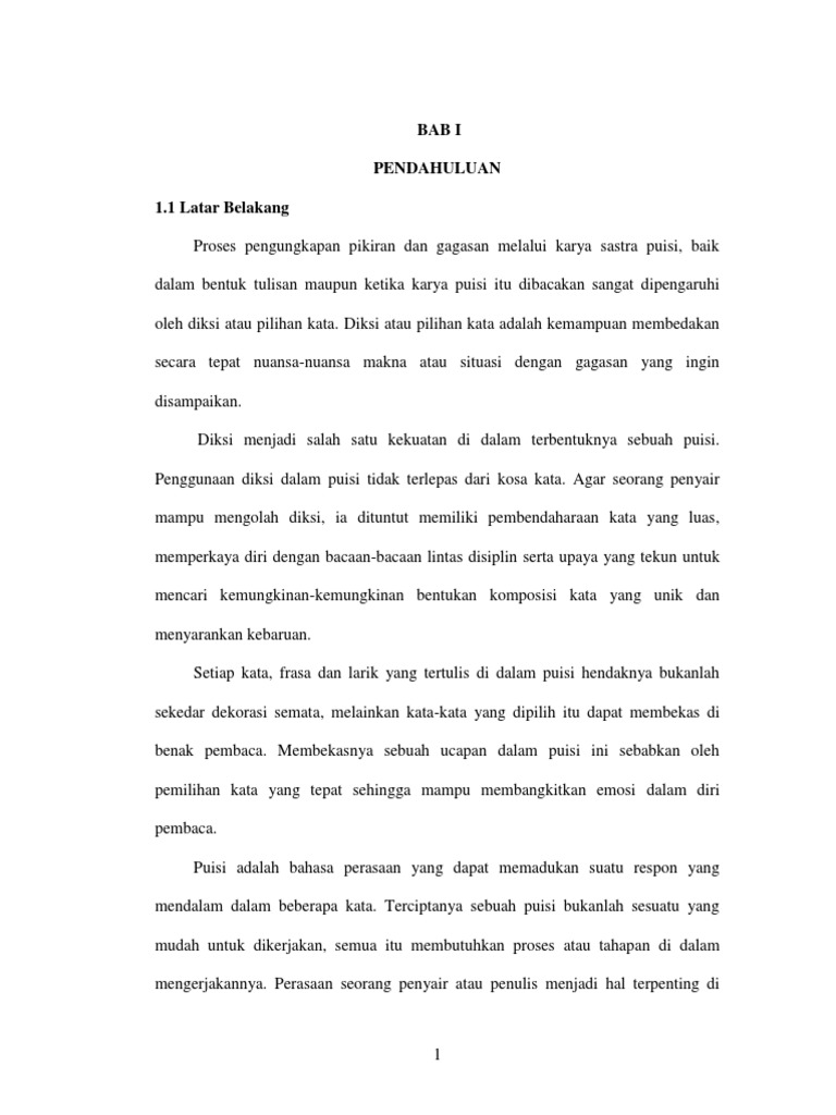BAB I PENDAHULUAN - Makalah Analisi Struktur Puisi “Meniti Tasbih”