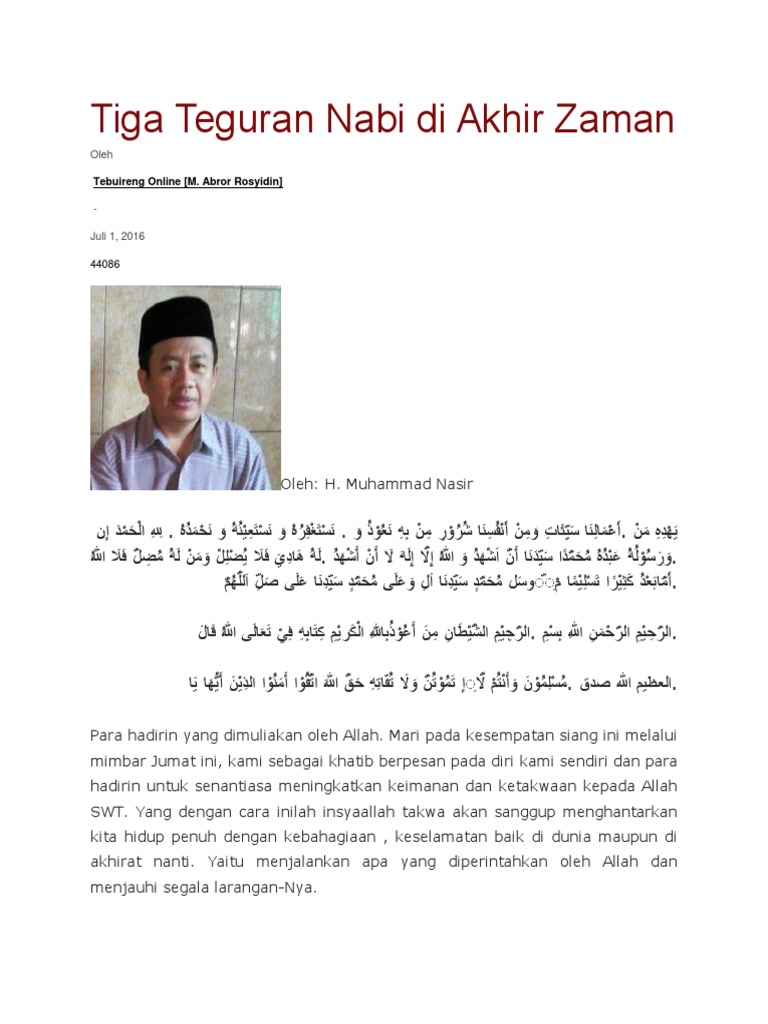 Tiga Teguran Nabi Di Akhir Zaman (1)
