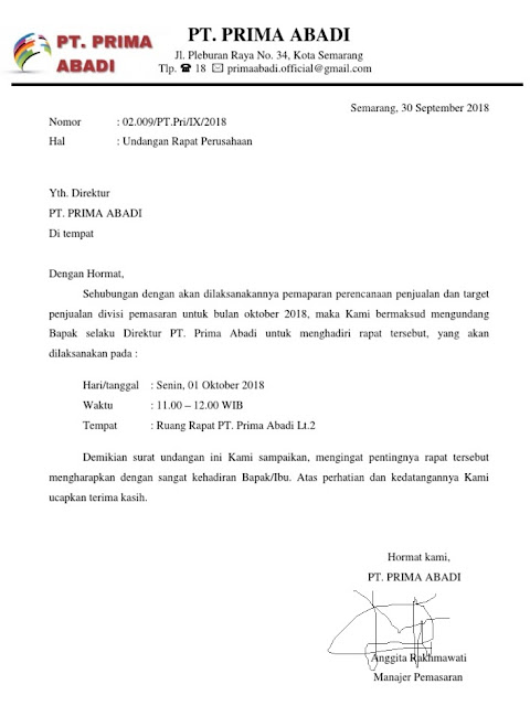 Contoh Surat Undangan Rapat Perusahaan - Cute766