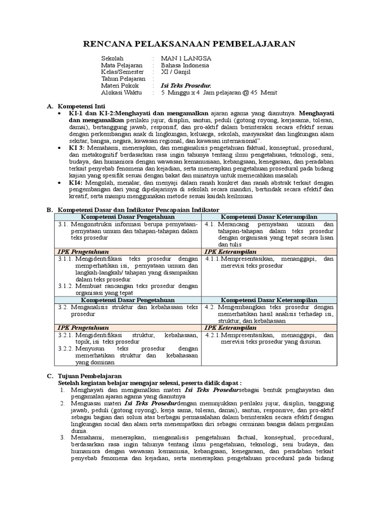 DOC) RPP Bahasa Indonesia 11 Revisi 2017 | mifjan 1984 - Academia.edu
