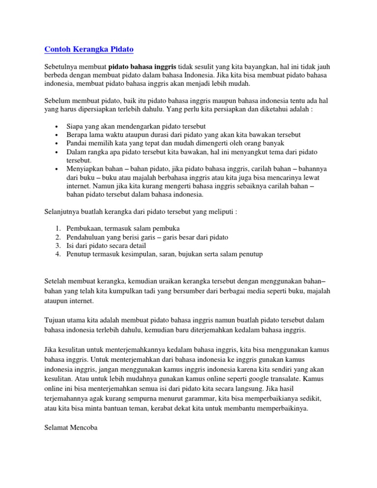 Contoh Naskah Pidato Bahasa Inggris Singkat | Indonesian Language | Internet