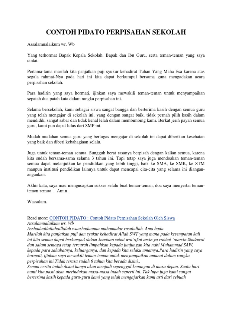 DOC) CONTOH PIDATO PERPISAHAN SEKOLAH | Sulaiman Sulaiman - Academia.edu