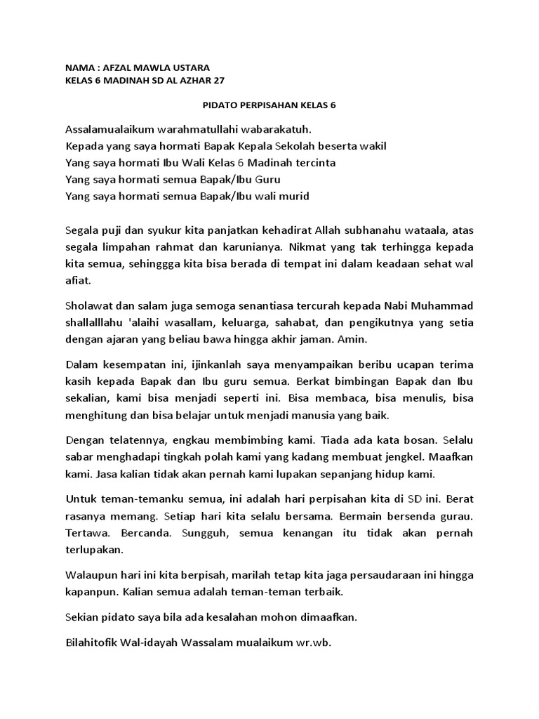 DOC) Pidato Perpisahan Kelas 6 | Charles Pardede - Academia.edu