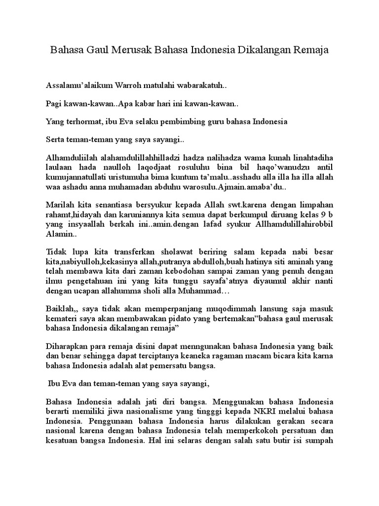 TEKS PIDATO BAHASA INDONESIA PENGGUNAAN BAHASA GAUL di KALANGAN REMAJA