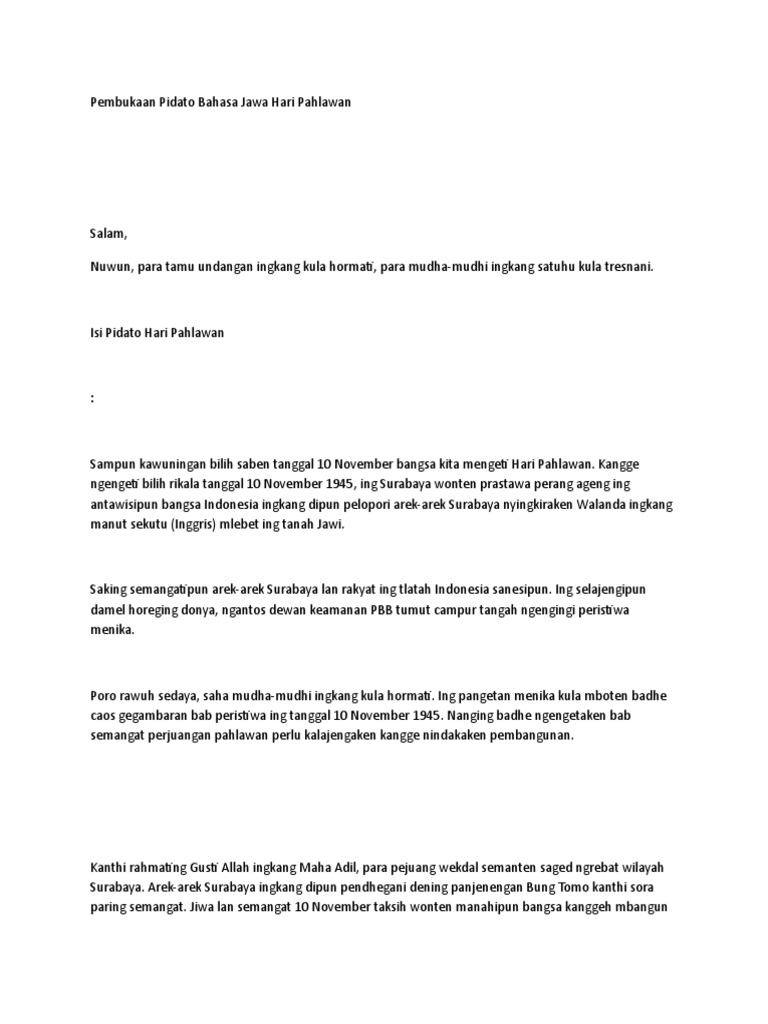 CONTOH PIDATO BAHASA JAWA TERBARU TENTANG HARI PAHLAWAN | Tausiah Teladan