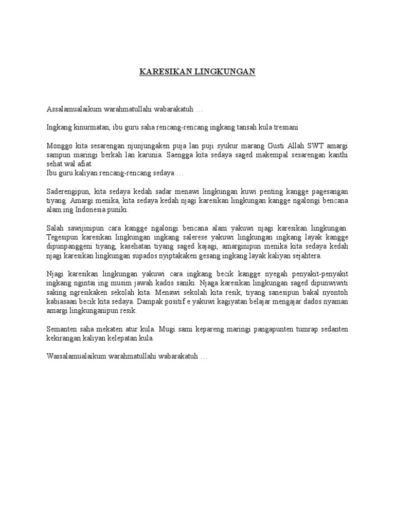 contoh soal shu: Contoh Pidato Bahasa Jawa Singkat Tentang Kesehatan