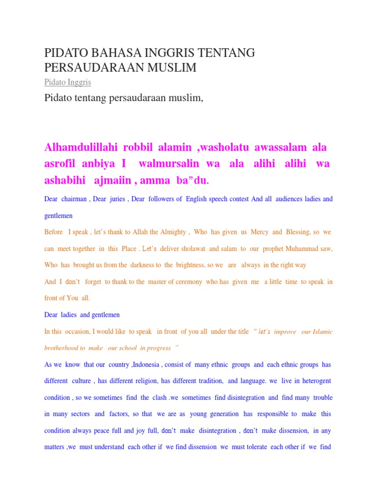 Pidato Bahasa Inggris Tentang Persaudaraan Muslim | Religious …